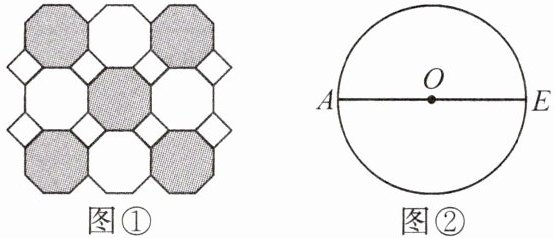 9. 图①是我们常见的地砖上的图案,其中包含了一种特殊的平面图形——正八边形. 如图②,AE 是$\odot O$的直径,用直尺和圆规作$\odot O$的内接正八边形 ABCDEFGH. (不写作法,保留作图痕迹)