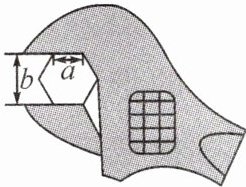 7. 情境题 拧螺帽 如图,工人师傅用扳手拧形状为正六边形的螺帽,现测得扳手的开口宽度$b=3cm$,则螺帽边长$a=$