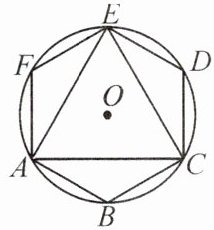 8. 如图,正六边形 ABCDEF 内接于$\odot O$,若$\odot O$的内接正三角形 ACE 的面积为$48\sqrt {3}$,求正六边形的周长.
