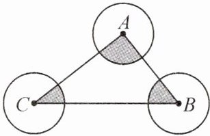 8. 数学思想 整体思想 如图,$\odot A,\odot B,\odot C$两两不相交,且半径都等于2,则图中三个扇形(即阴影部分)的面积之和为