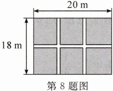 8. 如图,某校劳动实践课程试验园地是长为 $20m$,宽为 $18m$ 的矩形,为方便活动,需要在园地中间开辟一横两纵共三条等宽的小道。如果园地余下的面积为 $306m^{2}$,那么小道的宽为多少?设小道的宽为 $x m$,根据题意,可列方程为(