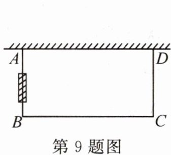 9. (2024·通辽)如图,小程的爸爸用一段 $10m$ 长的铁丝网围成一个一边靠墙(墙长 $5.5m$)的矩形鸭舍,其面积为 $15m^{2}$,在鸭舍侧面中间位置留一个 $1m$ 宽的门(由其他材料制成),则 $BC$ 的长为(