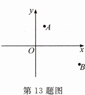 13. 在平面直角坐标系$xOy$中,点$A$,$B$的位置如图所示,抛物线$y=ax^{2}-2ax$经过$A$,$B$两点,下列四个结论:①抛物线的开口向上;②抛物线的对称轴是直线$x=1$;③$A$,$B$两点位于对称轴异侧;④抛物线的顶点在第四象限.其中不正确的是