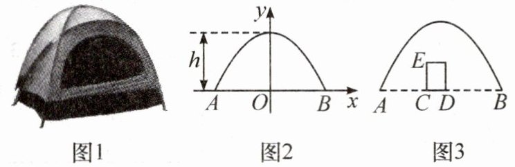 【建立模型】小邕发现 $ A $ 款帐篷搭建时张开的宽度 $ AB = 4 \, m $,顶部高度 $ h = 2 \, m $,于是他建立了平面直角坐标系(如图 2 所示),请你帮他求出帐篷支架对应的抛物线函数关系式.