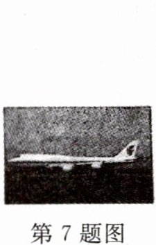 7. 如图所示的是某种型号的飞机,飞机着陆后滑行的距离 $ s(m) $ 关于滑行时间 $ t(s) $ 的函数解析式是 $ s = 100t - 2.5t^2 $,则此型号飞机着陆后滑行