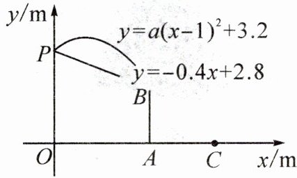 ∴点P的坐标为(0,2.8).把P(0,2.8)代入y = a(x - 1)² + 3.2,得a + 3.2 = 2.8,解得a = -0.4.