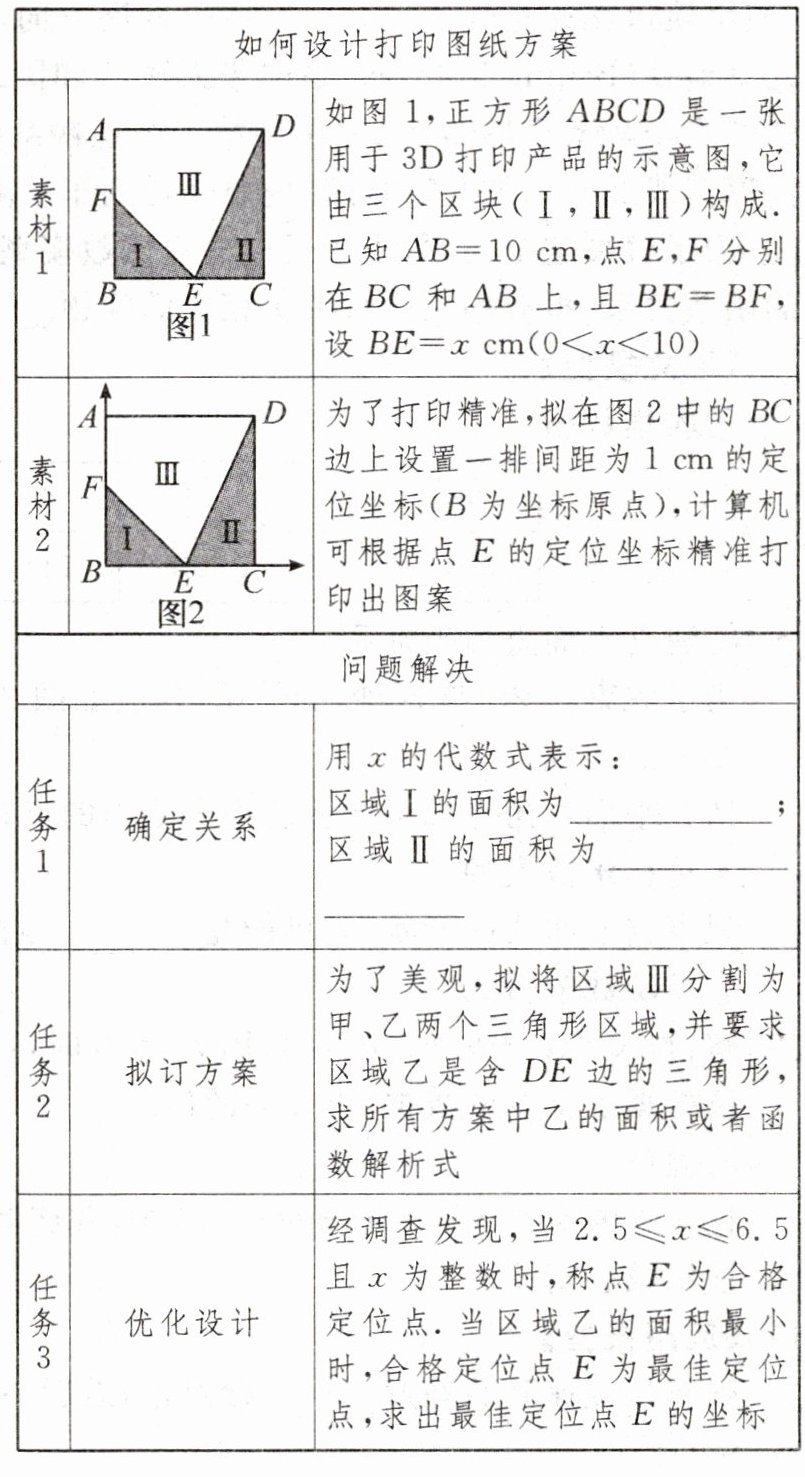 任务3:当采用方案①时,S乙 = 50cm²;当采用方案②时,S乙 = -1/2x² + 10x = -1/2(x - 10)² + 50,