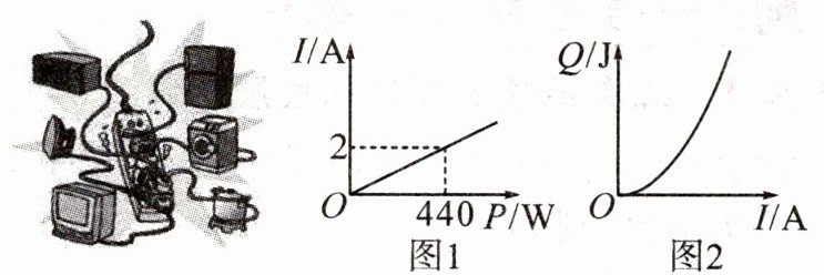 3. 新考向 跨学科 (2024·河南)把多个用电器连接在同一个插线板上,同时使用一段时间后,插线板的电源线会明显发热,存在安全隐患。数学兴趣小组对这种现象进行研究,得到时长一定时,插线板电源线中的电流 $ I $ 与使用电器的总功率 $ P $ 的函数图象(如图1),插线板电源线产生的热量 $ Q $ 与 $ I $ 的函数图象(如图2)。下列结论中错误的是(