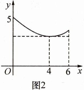 4. 如图1,在 $ \triangle ABC $ 中,点 $ P $ 从点 $ B $ 出发向点 $ C $ 运动,在运动过程中,设 $ x $ 表示线段 $ BP $ 的长,$ y $ 表示线段 $ AP $ 的长,$ y $ 与 $ x $ 之间的函数图象如图2所示,则边 $ AC $ 的长是(