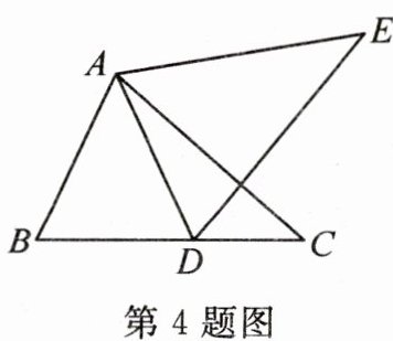 4. 如图,将△ABC绕着点A逆时针旋转51°得到△ADE,点B的对应点D落在边BC上,则: