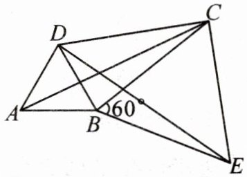 (2) 如图,将△ABC绕顶点B按顺时针方向旋转60°得到△DBE,连接AD,DC,CE,已知∠DCB=30°。