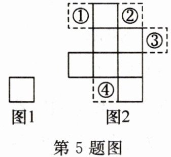5. 图 1 和图 2 中所有的小正方形都全等,将图 1 的正方形放在图 2 中①②③④的某一位置,使它与原来 $7$ 个小正方形组成的图形是中心对称图形,这个位置是 (