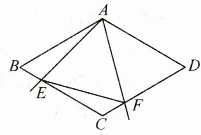 4. 如图,在菱形 ABCD 中,AB=4,∠BAD=120°,以点 A 为顶点的一个 60°的∠EAF 绕点 A 旋转,∠EAF 的两边分别交 BC,CD 于点 E,F,且点 E,F 不与点 B,C,D 重合,连接 EF.