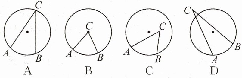 1. 下列各图中,$\angle ACB$是圆心角的是 (