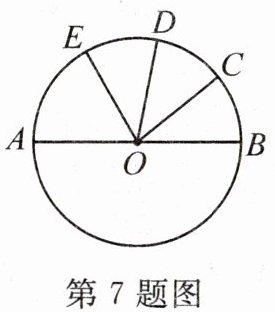 7. (教材$P85$练习$T2$变式)如图,$AB$为$\odot O$的直径,点$C$,$D$是$\overset{\frown}{BE}$的三等分点,$\angle AOE=60^{\circ}$,则$\angle COE$的度数为