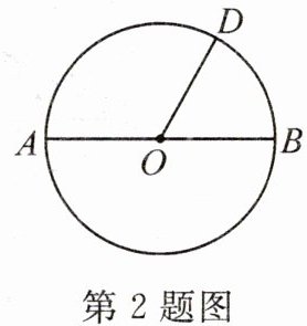 2. 如图,已知$AB$为$\odot O$的直径,$D$为半圆周上的一点,且$\overset{\frown}{AD}$所对圆心角的度数是$\overset{\frown}{BD}$所对圆心角度数的$2$倍,则圆心角$\angle BOD=$