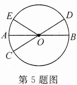 5. 如图,$AB$,$CD$是$\odot O$的直径,$\overset{\frown}{AE}=\overset{\frown}{BD}$.若$\angle AOE=32^{\circ}$,则$\angle COE$的度数是