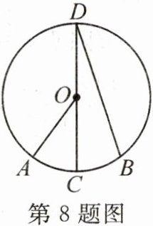 8. (2024·云南)如图,$CD$是$\odot O$的直径,点$A$,$B$在$\odot O$上. 若$\overset{\frown}{AC} = \overset{\frown}{BC}$,$\angle AOC = 36^{\circ}$,则$\angle D =$(