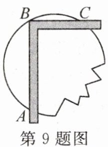 9. 新考向 真实情境 一圆形玻璃镜面损坏了一部分,为得到同样大小的镜面,工人师傅用直角尺作如图所示的测量,测得$AB = 12\ cm$,$BC = 5\ cm$,则圆形镜面的半径为