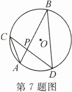 7. (2023·枣庄)如图,在$\odot O$中,弦$AB$,$CD$相交于点$P$. 若$\angle A = 48^{\circ}$,$\angle APD = 80^{\circ}$,则$\angle B$的大小为(