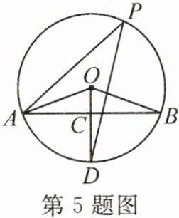 5. 如图,已知$AB$是$\odot O$的弦,$\angle AOB = 140^{\circ}$,$OC \perp AB$,垂足为$C$,$OC$的延长线交$\odot O$于点$D$. 若$\angle APD$是$\overset{\frown}{AD}$所对的圆周角,则$\angle APD =$