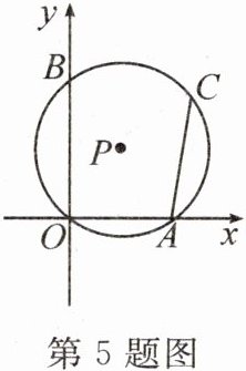 5. 如图,$\odot P$经过平面直角坐标系的原点$O$,且分别交$x$轴、$y$轴于$A$,$B$两点,$C$为$\overset{\frown}{ACB}$的中点. 若$A(6,0)$,$AC = 5\sqrt{2}$,则点$B$的坐标是