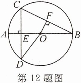 12. (2022·南充)如图,$AB$为$\odot O$的直径,弦$CD \perp AB$于点$E$,$OF \perp BC$于点$F$,$\angle BOF = 65^{\circ}$,则$\angle AOD =$(