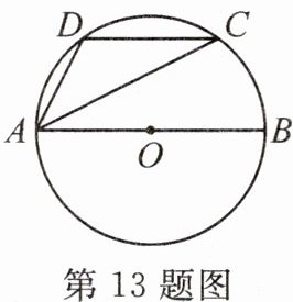 13. 如图,$AB$是$\odot O$的直径,$\angle ACD = \angle CAB$,$AD = 2$,$AC = 4$,则$\odot O$的半径为
