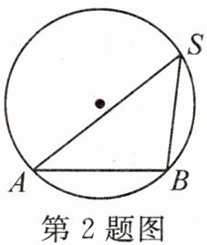 2. 如图,点$A$,$B$,$S$在圆上,若弦$AB$的长度等于圆半径长度的$\sqrt{2}$倍,则$\angle ASB$的度数是