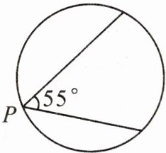 14. (2023·郴州)如图,某博览会上有一圆形展示区,在其圆形边缘的点$P$处安装了一台监视器,它的监控角度是$55^{\circ}$. 为了监控整个展示区,则最少需要在圆形边缘上共安装这样的监视器