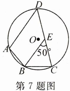 7. (2024·吉林)如图,四边形 $ABCD$ 内接于 $\odot O$,过点 $B$ 作 $BE // AD$,交 $CD$ 于点 $E$. 若 $\angle BEC = 50^{\circ}$,则 $\angle ABC$ 的度数是(