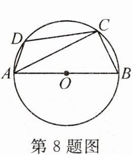8. (2023·泰安)如图,$AB$ 是 $\odot O$ 的直径,$D$,$C$ 是 $\odot O$ 上的点,$\angle ADC = 115^{\circ}$,则 $\angle BAC$ 的度数是(