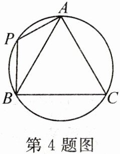 4. 如图,$P$ 为等边三角形 $ABC$ 外接圆上一点,则 $\angle APB$ 的度数为