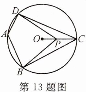 13. 新考向 开放性问题 如图,四边形 $ABCD$ 内接于 $\odot O$,$\angle DAB = 130^{\circ}$,连接 $OC$,点 $P$ 是半径 $OC$ 上任意一点,连接 $DP$,$BP$,则 $\angle BPD$ 可能等于