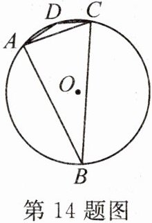 14. 如图,四边形 $ABCD$ 是 $\odot O$ 的内接四边形,$\angle ADC = 150^{\circ}$,弦 $AC = 2$,则 $\odot O$ 的半径为