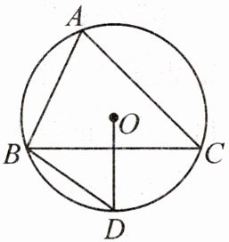1. (2023·陕西改编)如图,$\triangle ABC$ 是 $\odot O$ 的内接三角形,$\angle A = 72^{\circ}$,过点 $O$ 作 $BC$ 的垂线交 $\widehat{BC}$ 于点 $D$,连接 $BD$,则 $\angle D$ 的度数为(
