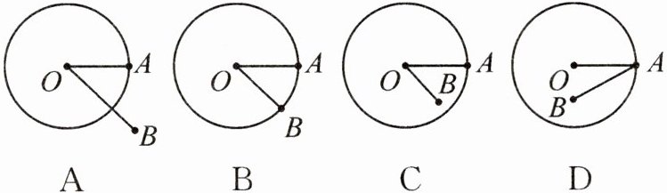 2. 已知⊙O的半径OA长为√{2},若OB=√{3},则可以得到的正确图形可能是(