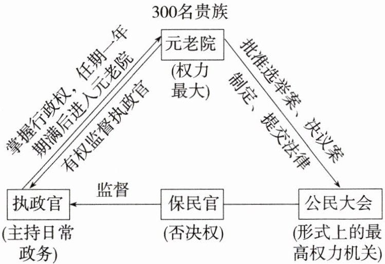 答案 (1)罗马共和国时期。执政官;元老院;公民大会;保民官。