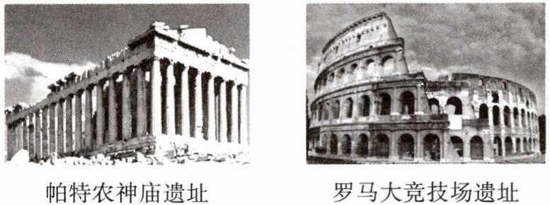 (2)观察上面两幅图片,概括古希腊罗马建筑的共同特点,并指出其内在联系。