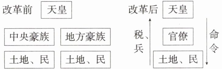 改革后:天皇→官僚→土地、民(税、兵向上,命令向下)