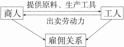 2. C 题干示意图反映了商人向工人提供原料和生产工具,工人成为完全出卖劳动力的雇佣劳动者,与商人形成雇佣关系。该示意图与手工工场的产生有关。故选C。