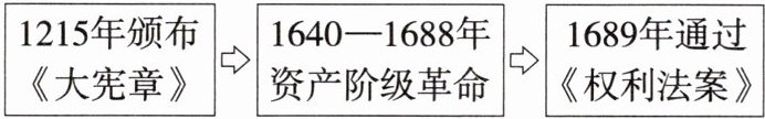 A 结合所学可知,从《大宪章》的颁布,到资产阶级革命,再到《权利法案》的通过,反映了英国君主立宪制探索的过程。故选 A。