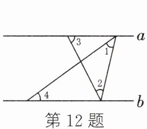 12. 如图,$a // b$,$\angle 1 + \angle 2 = 75^{\circ}$,则$\angle 3 + \angle 4 = $