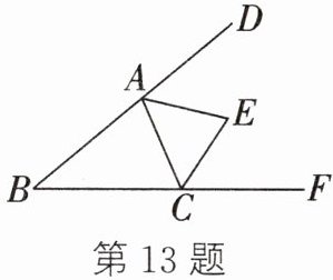13. 如图,在$\triangle ABC$中,$\angle B = 40^{\circ}$,三角形的外角$\angle DAC和\angle ACF的平分线交于点E$,则$\angle AEC = $