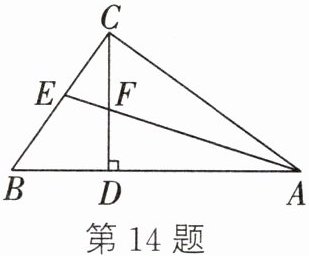 14. 如图,在$\triangle ABC$中,$\angle ACB = 90^{\circ}$,$CD \perp AB于点D$,$AE$是角平分线,$AE$、$CD相交于点F$。