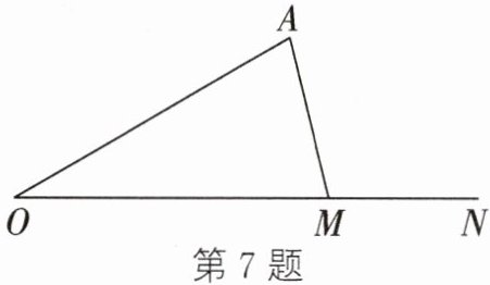 7. 如图,点M是射线ON上的一个动点(不与点O重合),点A在射线ON外,且∠AON= 30°,在点M运动过程中,若△AOM为锐角三角形,则∠A的取值范围是 (