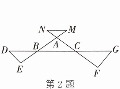 2. (2025·郑州模拟)如图,线段DG、EM、FN两两相交于B、C、A三点,则∠D+∠E+∠F+∠G+∠M+∠N的度数是 (