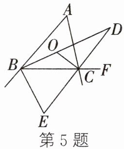 5. 在$△ABC$中,$∠ABC和∠ACB$的平分线交于点 O,$∠ACB的外角平分线所在直线与∠ABC$的平分线交于点 D,与$∠ABC$的外角平分线交于点 E,有下列结论:①$∠BOC= 90^{\circ }+\frac {1}{2}∠A$;②$∠D= \frac {1}{2}∠A$;③$∠E= ∠A$;④$∠E+∠DCF= 90^{\circ }+∠ABD$.其中,一定正确的是____