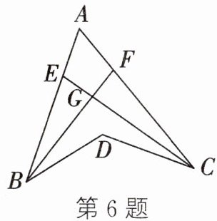 6. 如图,BF 平分$∠ABD$,CE 平分$∠ACD$,BF 与 CE 交于点 G.若$∠BDC= m^{\circ },∠BGC= n^{\circ }$,则$∠A$的度数为