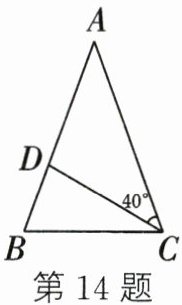 14. 如图,在△ABC 中,AB = AC,CD = CB. 若∠ACD = 40°,则∠BAC = ______.